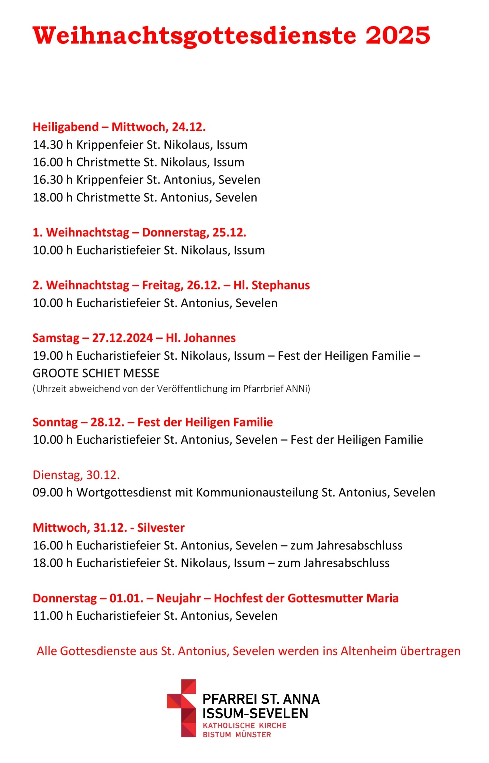 Alle sind herzlich zur Mitfeier des Pontifikalamtes in die St. Antonius Kirche in Sevelen eingeladen. Die Messfeier beginnt um 18.00 Uhr. Musikalisch wird sie von Martin Engbroichs an der Orgel mitgestaltet.